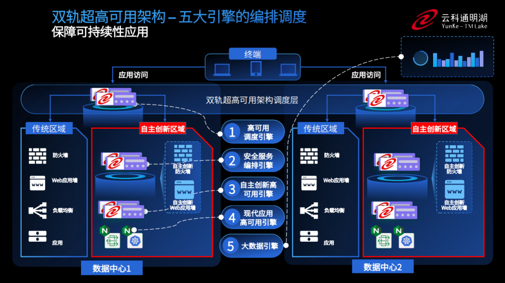 为实现双轨超高可用架构信创区和非信创区的跨域协同,实现信创区域和非信创区域的平滑过渡,yl7703永利通过五大引擎实现多层次的应用可持续性。
